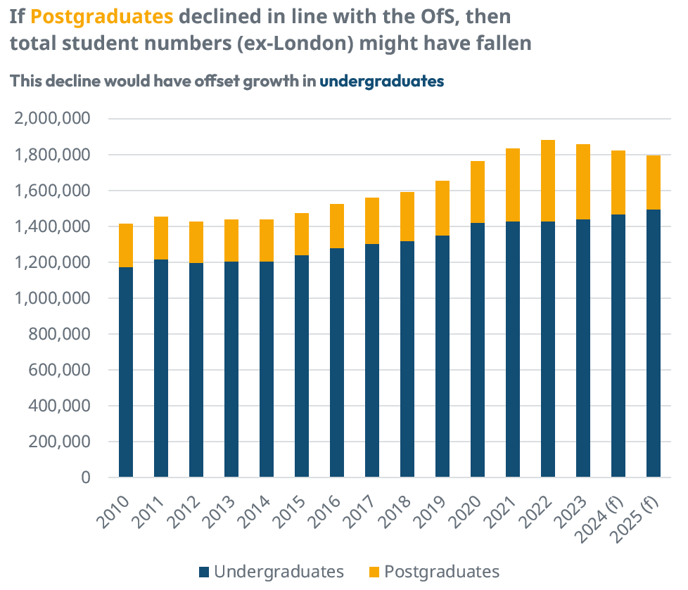 Looking at the national picture outside of London and taking the view that postgraduates may have declined further, as indicated by the OfS, more recent fundamentals look very different.